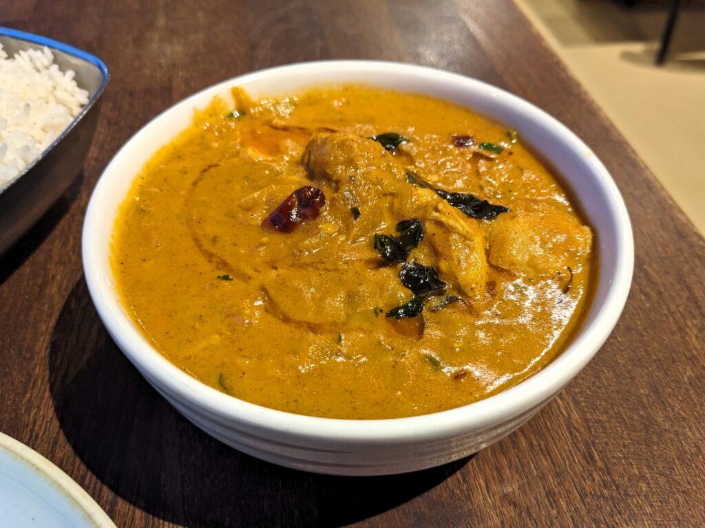 Da wir danach noch auf ein Konzert wollten und somit kein Essen hätten mitnehmen können, konnten wir leider einen winzigen Teil der Karte probieren: Das vegetarische Kothu ist wohl ein bekanntes Streetfood aus Sri Lanka, das aus zerhacktem Fladenbrot, Rührei, Gemüse und natürlich einer Menge Gewürze besteht. Es war wirklich köstlich und hatte eine schöne Konsistenz. Mit dem Kadai Gemüse sind wir etwas ins Risiko gegangen, da ich es in anderen Restaurants bisher eher etwas langweilig erlebt habe. Hier war es aber sensationell cremig, das Gemüse nicht zu weich gegart und auch gewürztechnisch hat es uns sehr gefallen. Dazu hatten wir noch 2 sehr leckere Parottas (ein dünnes, weiches, mehrlagiges, feuchtes Fladenbrot) und eine Portion Basmatireis, der schön zart und nicht zu trocken war. Das Chettinad Curry war ganz nett, aber nicht aufregend und das Mango-Kulfi zum Schluss hätte noch etwas mehr Power haben können. Aber insgesamt waren wir wirklich begeistert.